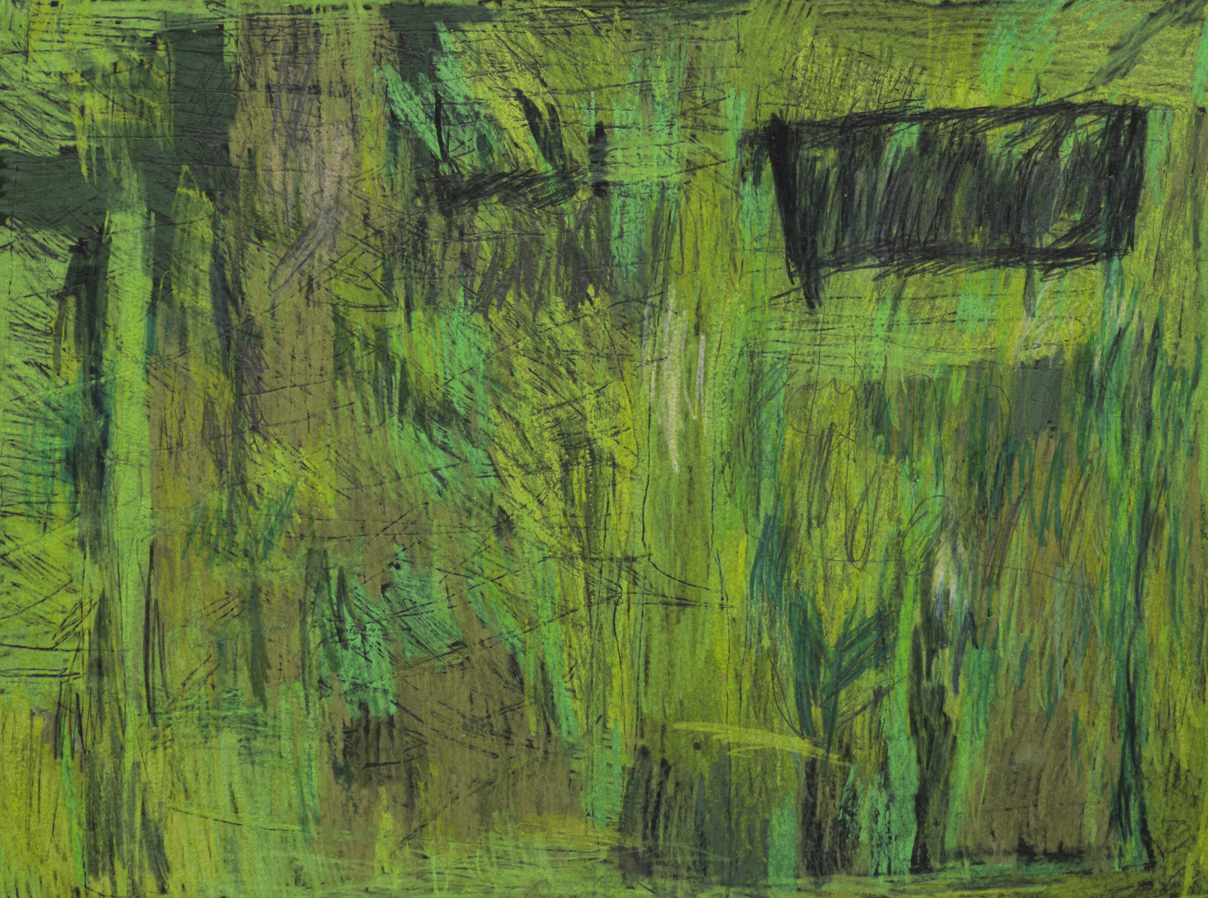 His images are gradually built up by each coloured mass until the entire surface is filled with harmonic patterns that often contain subtle forms explained through personal narrative.