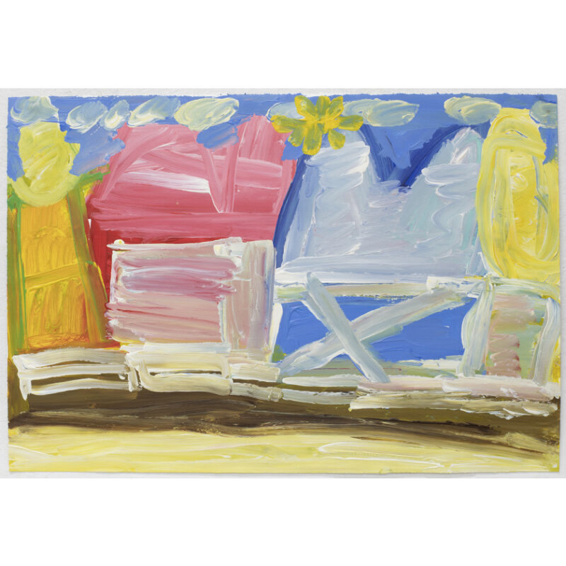 Michael Trasancos predominantly works in acrylic paint and frequently portrays a fascination with Australian culture. Often drawing from souvenir calendars, Trasancos’ subject matter features Australian landscapes, native animals and ‘Aussie Rules’ football. His playful, brightly coloured paintings are expressive in style and sometimes incorporate text.