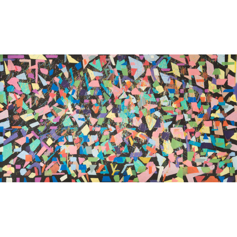 James MacSporran is an emerging artist working primarily in painting and drawing on paper and canvas. Inspired by trains and cityscapes, stylistically his art practice embodies a blend of abstraction and graffiti, resulting in fluoro-coloured and densely layered artworks that he creates from his imagination. Often synthesising text with abstraction, his work conjures references to mazes, street art and old-style arcade games.