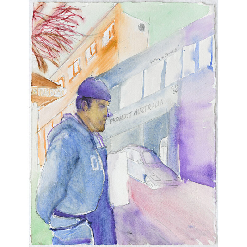 Amani Tia’s distinctive style is impacted by his immediate environment. A confident draughtsperson equipped with a natural aptitude for drawing, Tia enjoyed early success in the appropriation of iconic paintings by some of the great masters, including Manet, Gauguin and Picasso. More recently Tia’s varied subject matter often pays homage to key artists and musicians from a time period roughly spanning the 1950’s through to the 1970’s in a style reflective of Australian modernism, bringing to mind artists such as Joy Hester. Tia has worked at Arts Project Australia since 2013 and was a finalist in the Victorian Indigenous Art Awards in 2014. In 2017, he undertook a Bundoora Nebula Residency at Bundoora Homestead Art Centre. His work is held in private collections Australiawide.