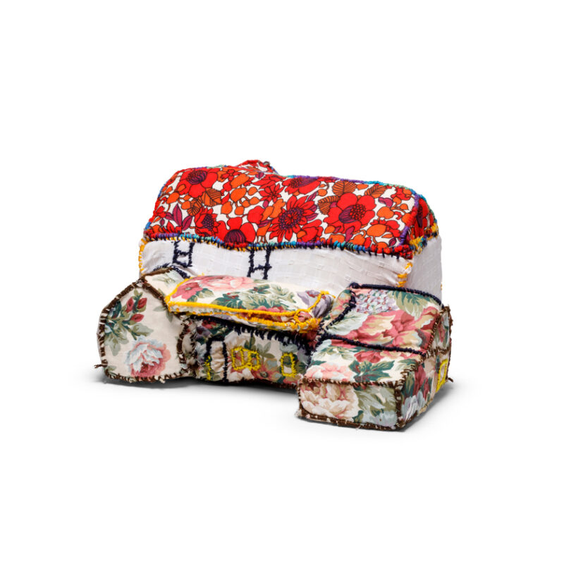 Personal connections are interwoven with his subjects and inform the narrative from the research stage through to production and public outcome. O’Brien’s recent work shifts away from traditional sculpture to soft sculpture. The brightly coloured, sewn and stuffed fabric houses and iconic buildings transform them from homes of form and function, creating imaginative sculptures that are both meaningful and playful.