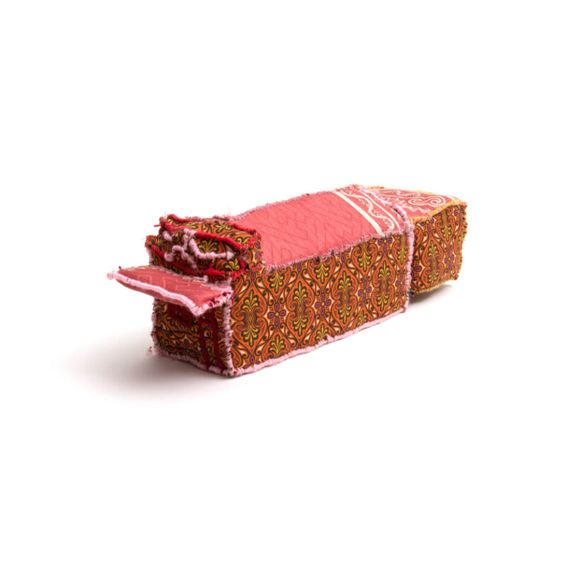Personal connections are interwoven with his subjects and inform the narrative from the research stage through to production and public outcome. O’Brien’s recent work shifts away from traditional sculpture to soft sculpture. The brightly coloured, sewn and stuffed fabric houses and iconic buildings transform them from homes of form and function, creating imaginative sculptures that are both meaningful and playful.