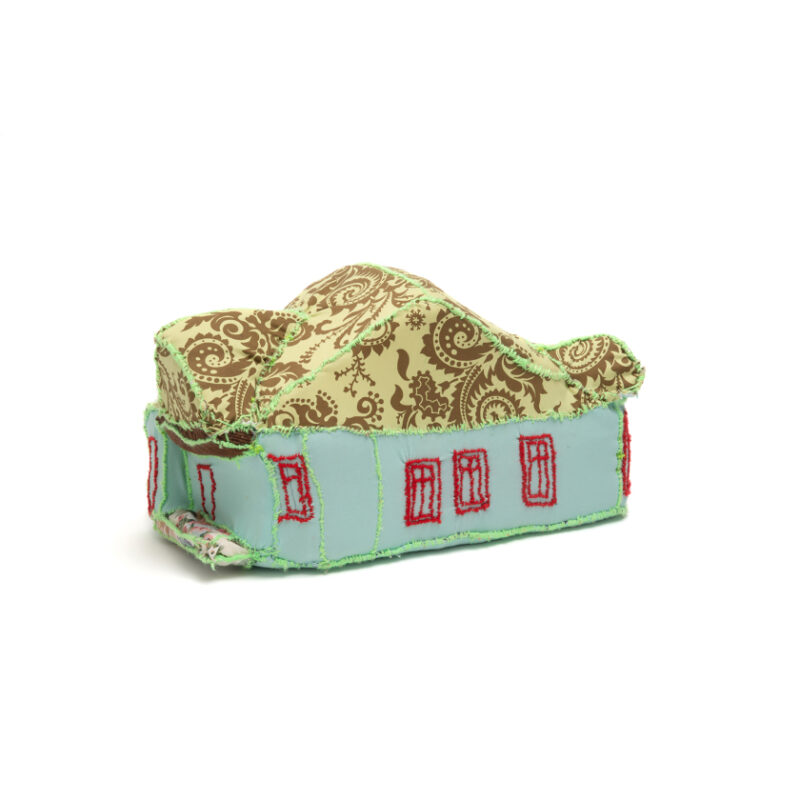 Personal connections are interwoven with his subjects and inform the narrative from the research stage through to production and public outcome. O’Brien’s recent work shifts away from traditional sculpture to soft sculpture. The brightly coloured, sewn and stuffed fabric houses and iconic buildings transform them from homes of form and function, creating imaginative sculptures that are both meaningful and playful.