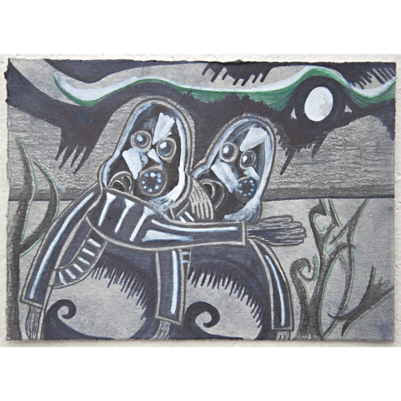 Michael Camakaris is a multi-disciplinary artist whose practise encompasses drawing, painting, collage, printmaking and ceramics. His work is characterised by subtle detailing and layered graphical mark-making. His compositions are bold and often references art history; drawing from surrealism to dada and abstraction. He has worked in the Arts Project studio since 2010 and presented his first solo exhibition Five Bulls, No Bull as part of the Shepparton Art Museum Drawing Wall Commission in 2013. He has been included in numerous group exhibitions and has work in private collections worldwide.