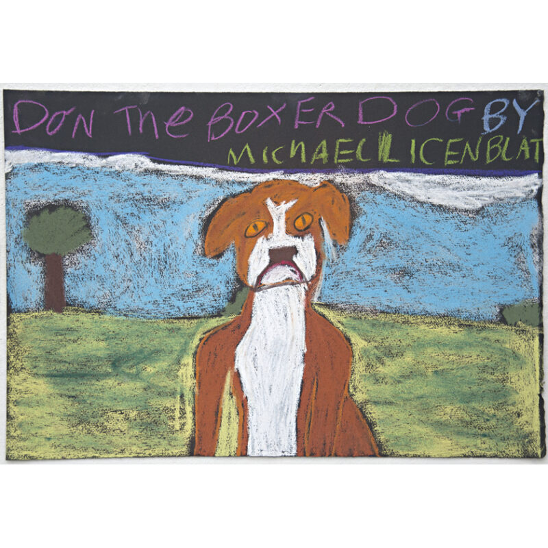 Spanning drawing, animation and zines, Michael Licenblat’s practice is punctuated by a vivid graphic sensibility. His works are reminiscent of comic books, integrating his cartoonesque characters with text and speech bubbles to form inventive and humorous narratives. His narratives are marked by a continual pursuit of justice, where good prevails over evil, often driven by recurring characters including the hero-like police officer, the damsel in distress, the mad scientist and the petty thug. Another facet of Michael’s work is a series of animal studies to which he attributed character names. Michael Licenblat is an emerging artist and has worked in the Arts Project Australia studio since 2017. He published his first zine “Dream Gladiators” a fantasy thriller in 2019. His work is held in private collections throughout Australia..