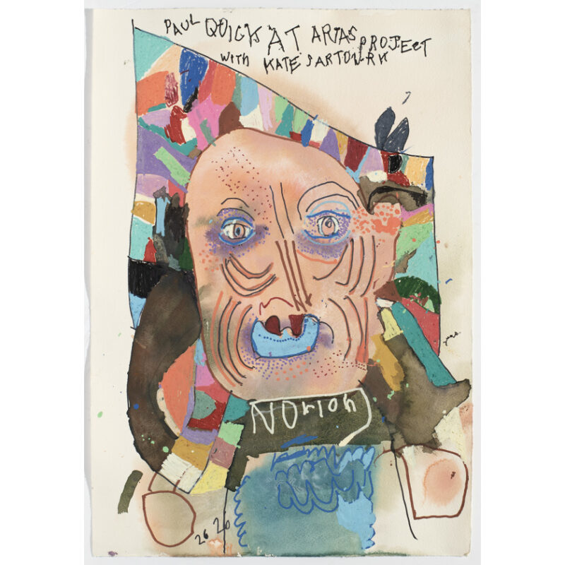 Paul Quick is an emerging artist working with pastel, acrylic, ink, and paint pen. His practice has similar qualities to neo-expressionism in the seemingly rough handling of materials, resulting in expressive mark-making. The work is further individualised by the inclusion of erratic text, providing layered messaging.