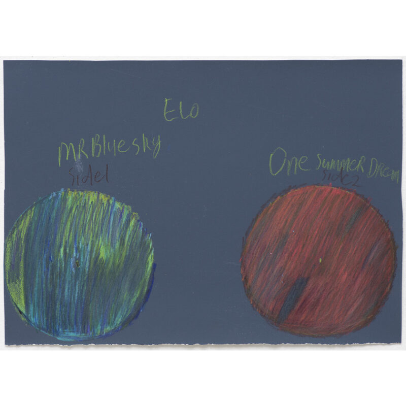 Cameron Gresswell is an emerging artist working in acrylic and pastel on paper. With a strong thematic focus on music, the works depict colourful lyrics, names of artists and bands floating and falling across the page. Often around two brightly coloured records, the artworks give the impression the viewer has a birds-eye view of an active mixing deck. Gresswell has worked at Arts Project Australia since 2016 and has exhibited in Arts Project Australia’s annual group exhibitions. His work is held in private collections.