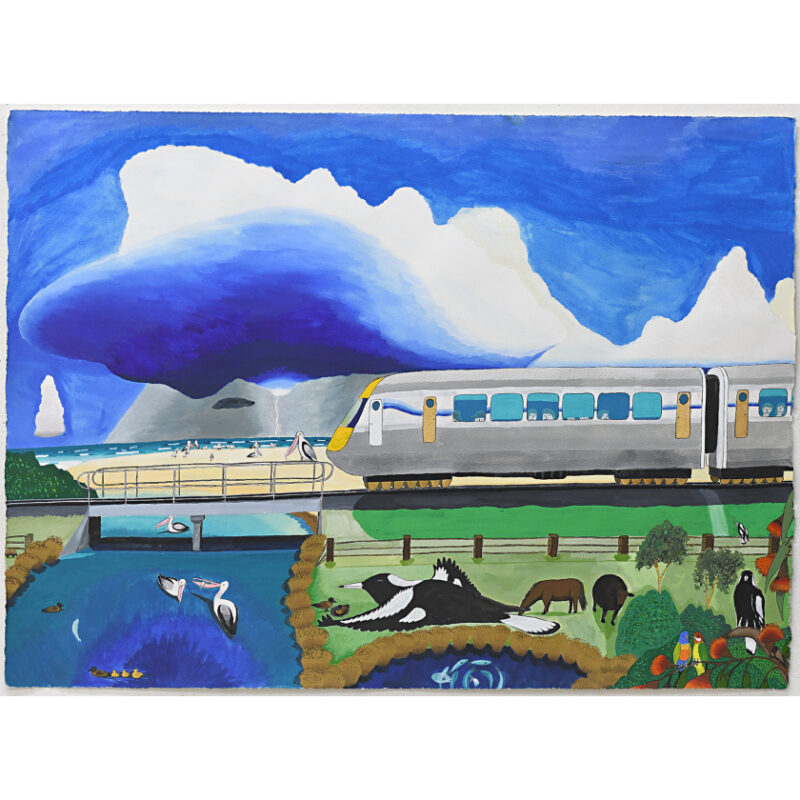 Miles Howard-Wilks is a mid-career artist who specialises in painting, ceramics, photography, digital art and zines. His work features dynamic and surreal landscapes and seascapes with recurring motifs of iconic Australian animals, landmarks and transport. Howard-Wilks has worked at Arts Project since 2000 and has presented three solo exhibitions. He has exhibited in national and international group exhibitions and has work in the National Gallery of Australia, National Gallery of Victoria, Museum of Contemporary Art and City of Melbourne collection, as well as private collections worldwide.
