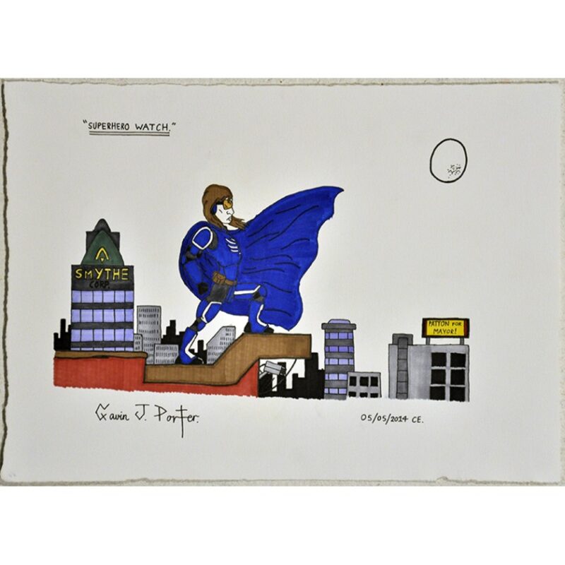 Gavin Porter is an emerging artist with a graphical style that focuses on zines, narrative and mythical map driven drawings. With a satirical sense of humour and meticulous planning, his artworks present colourful illustrations in fine liner and marker on paper, as well as black and white ink drawings. His practice explores social and political dichotomies recurring characters engage in the eternal struggle between good and evil, as well as post-apocalyptic survival.