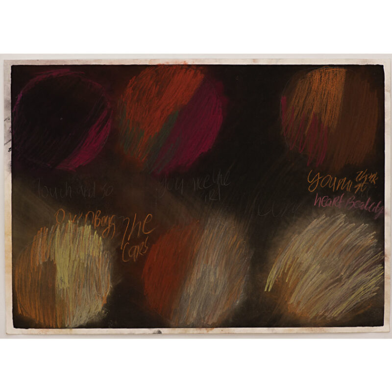 Cameron Gresswell is an emerging artist working in acrylic and pastel on paper. With a strong thematic focus on music, the works depict colourful lyrics, names of artists and bands floating and falling across the page. Often around two brightly coloured records, the artworks give the impression the viewer has a birds-eye view of an active mixing deck. Gresswell has worked at Arts Project Australia since 2016 and has exhibited in Arts Project Australia’s annual group exhibitions. His work is held in private collections.