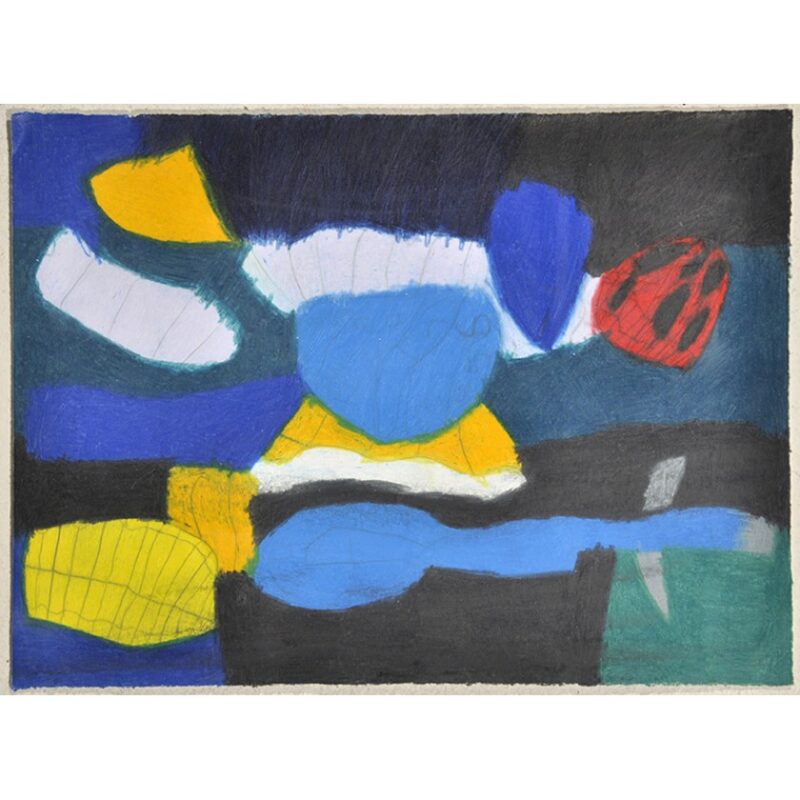 George Aristovoulou is an emerging artist who works with pencil, ink and gouache on paper. His style exemplifies figurative abstraction, where he carefully segments the picture plane, creating broad linear stripes that incorporate figurative elements. The colours seamlessly blend together, lending a dream-like quality to the imagery he carefully constructs. Aristovoulou has worked at Arts Project Australia since 2011. He has exhibited in numerous group exhibitions and presented his first solo Fervent Response, virtually in 2020. His work is held in private collections throughout Australia.