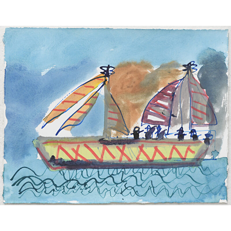 Steven Perrette is a mid-career artist whose small and mid-scale works on paper frequently depict frenetic workings of the western world. Throughout his career, he has maintained a fascination with industrial and vintage ships and sailing boats as well as country roads and highways that he travelled with his father when he was a young child. Perrette has worked at Arts Project since 2000 and had his first solo exhibition in 2011. He has exhibited in numerous group shows and has work in the National Gallery of Australia, City of Moreland and V-Line collections.