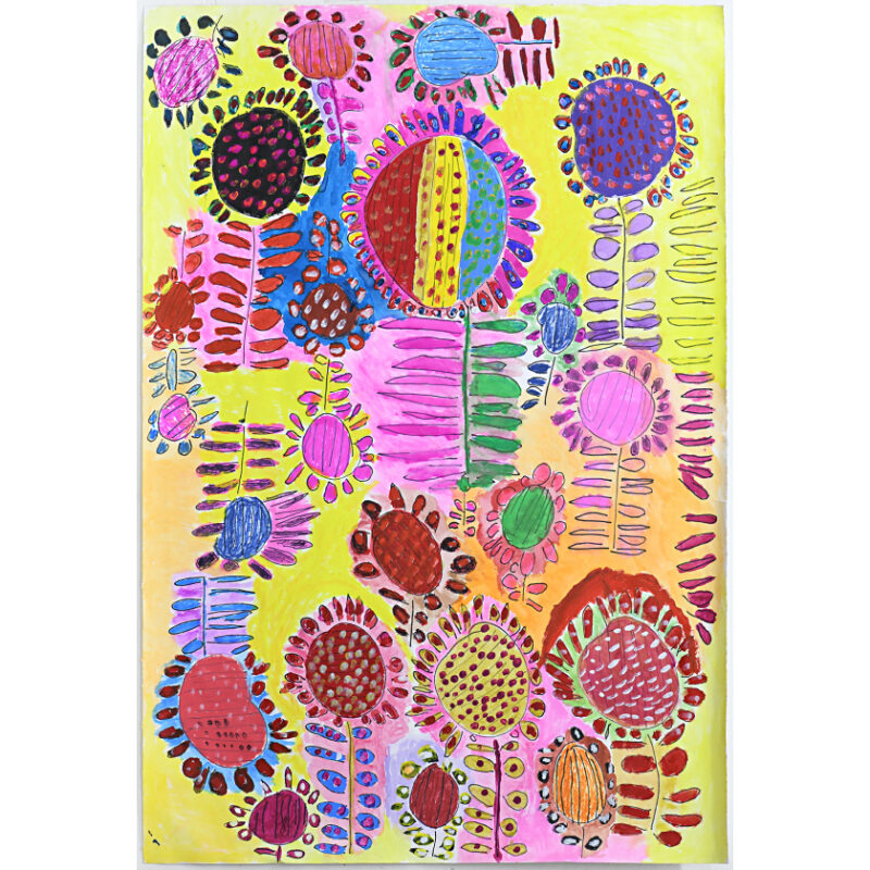 Robert Brown is an accomplished abstract painter whose work is characterised by his use of pop and fluro colour and spontaneous layering of floral motifs. Typically working on large sheets of paper and canvas, he draws inspiration from found images of landscapes, reinterpreting what he sees with great freedom to create bright compositions, balancing highly concentrated pattern with quiet space. Brown has worked at Arts Project since 2001 and has exhibited extensively throughout Australia. He has work in the Artbank Collection in Melbourne, as well as private collections worldwide.