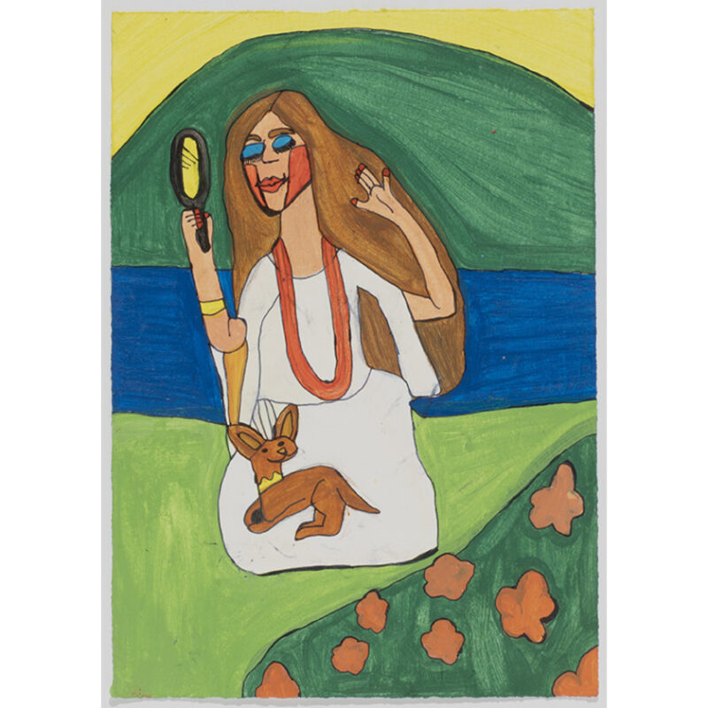 Sammi-Jo Matta is an emerging artist who uses a range of mediums in her work, from acrylic paints through to compressed charcoal. Often referencing advertisements, pop culture and everyday life, she approaches her practice with confident fluid lines and brilliant colours. The proportions of her figures are of interest and are elongated to fill the proportions of the page.