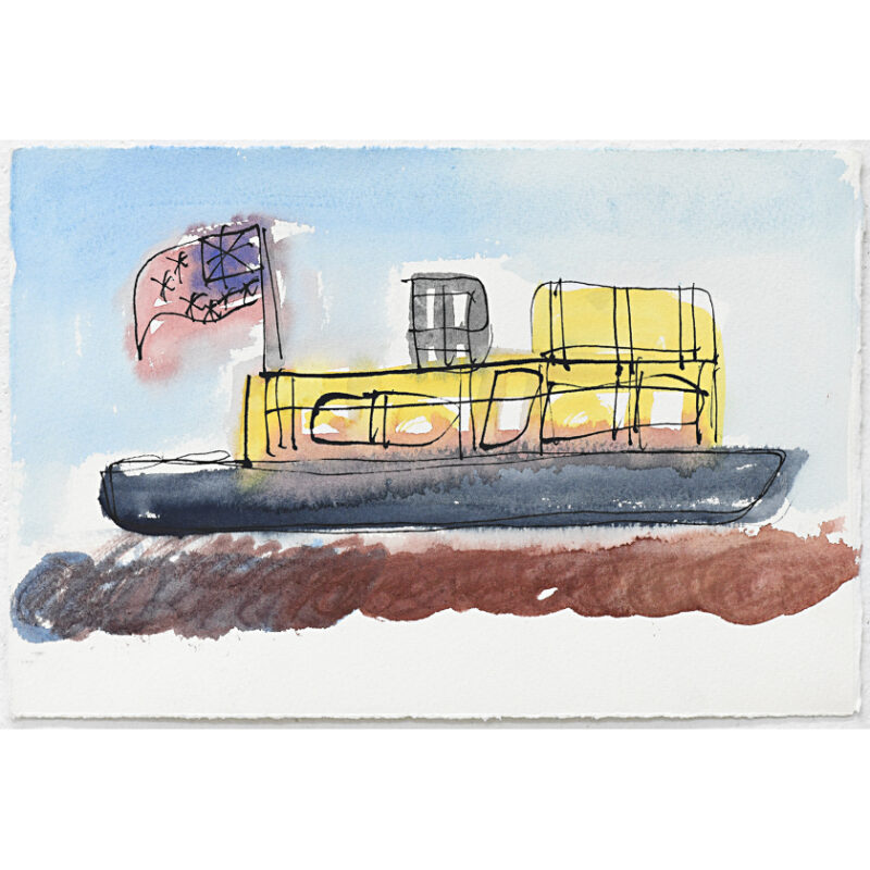 Steven Perrette is a mid-career artist whose small and mid-scale works on paper frequently depict frenetic workings of the western world. Throughout his career, he has maintained a fascination with industrial and vintage ships and sailing boats as well as country roads and highways that he travelled with his father when he was a young child. Perrette has worked at Arts Project since 2000 and had his first solo exhibition in 2011. He has exhibited in numerous group shows and has work in the National Gallery of Australia, City of Moreland and V-Line collections.