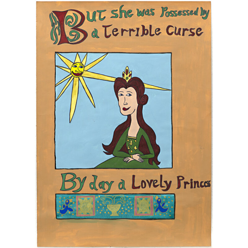 Daniel Pace’s small works on paper are executed in pencil with blocks of solid colour and strong outlines, often on coloured surfaces. He is also a skilled ceramicist and digital artist. Regardless of the medium he is working in, he is an ardent fan of Disney and the films of Tim Burton, both of which inspire and inform his practice. To view his work is to connect with a range of fantastical characters portrayed in much the same style as they were originally created, yet lovingly re-interpreted to reflect Pace’s unique perspective.