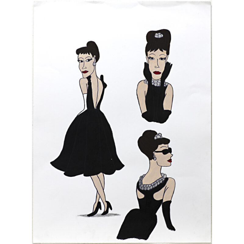 Daniel Pace’s small works on paper are executed in pencil with blocks of solid colour and strong outlines, often on coloured surfaces. He is also a skilled ceramicist and digital artist. Regardless of the medium he is working in, he is an ardent fan of Disney and the films of Tim Burton, both of which inspire and inform his practice. To view his work is to connect with a range of fantastical characters portrayed in much the same style as they were originally created, yet lovingly re-interpreted to reflect Pace’s unique perspective.