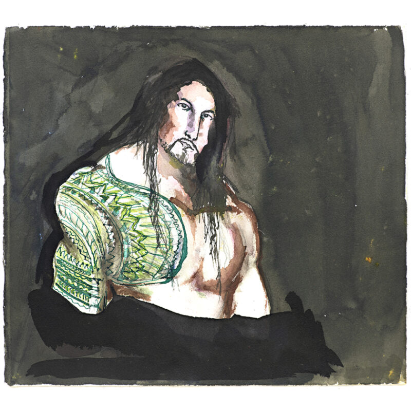 Amani Tia’s distinctive style is impacted by his immediate environment. A confident draughtsperson equipped with a natural aptitude for drawing, Tia enjoyed early success in the appropriation of iconic paintings by some of the great masters, including Manet, Gauguin and Picasso. More recently Tia’s varied subject matter often pays homage to key artists and musicians from a time period roughly spanning the 1950’s through to the 1970’s in a style reflective of Australian modernism, bringing to mind artists such as Joy Hester. Tia has worked at Arts Project Australia since 2013 and was a finalist in the Victorian Indigenous Art Awards in 2014. In 2017, he undertook a Bundoora Nebula Residency at Bundoora Homestead Art Centre. His work is held in private collections Australiawide.