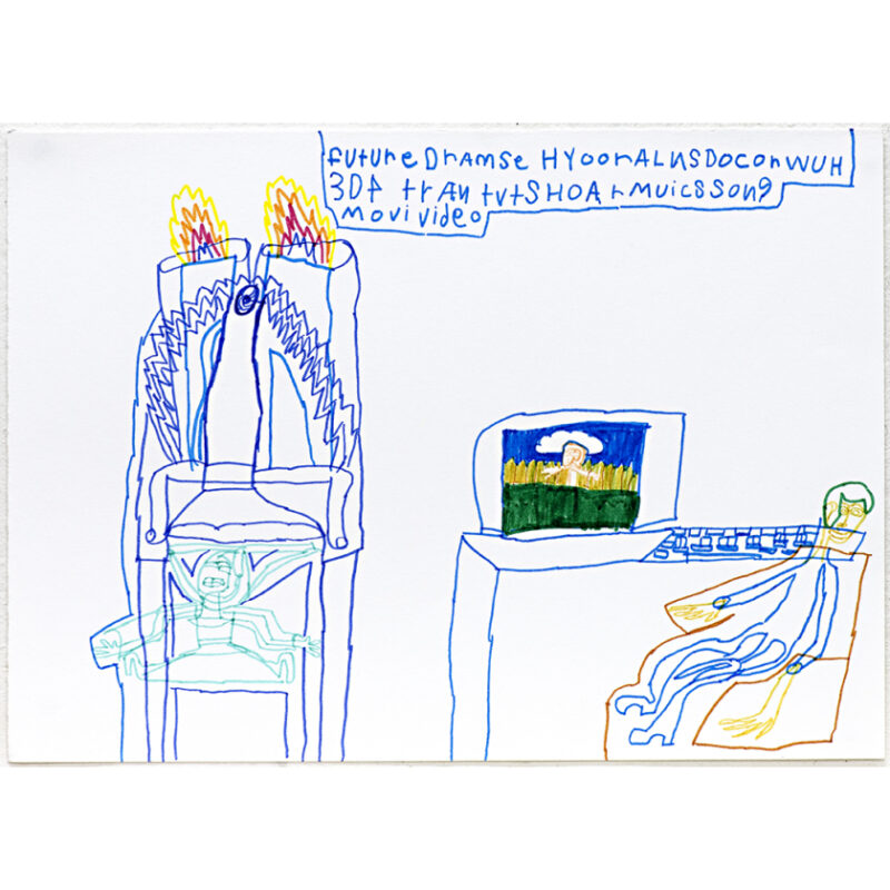 Will McConnell is an emerging artist creating brightly coloured drawings. McConnell’s drawings feature clusters of colour and line offset by large areas of negative space, resulting in unique compositions. McConnell’s tender, cartoon-like works exude charm and resonate with quirky, captivating energy, the jumbled text further adding to the strange magnetism of the imagery.