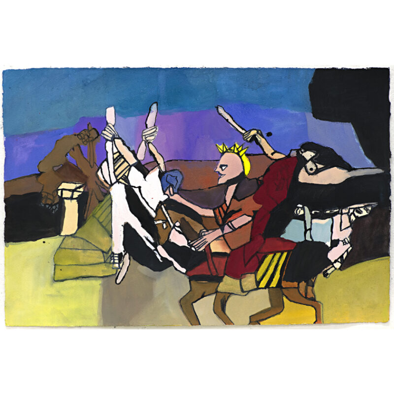 Paul Hodges is a mid-career artist known for his figurative paintings. He is an incredible colourist, and while his preferred medium is painting, he has worked across a variety of mediums throughout his career. Inspired by dancers, models and the romantic Old Masters, his work concentrates on representing the human figure in motion, which he sources from magazines and books. Hodges has worked in the Arts Project studio since 1998 and has presented numerous solo and group exhibitions. His work is held in the National Gallery of Victoria (as gifted by Stuart Purves) and in private collections throughout Australia.
