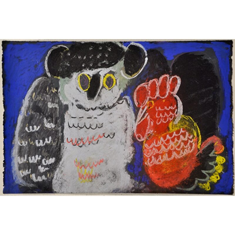 Dorothy Berry is a painter who approaches her practice with great passion. This is evident in the energy and vibrancy her images exude. The work demonstrates a keen interest in animals, and often employs them in a symbolic sense. She has developed an intricate set of signs in order to construct personal narratives and her work often recounts an experience, event, belief or opinion relating to her life. Her densely packed compositions frequently consist of an accumulation of these incidents or symbols, instilling the works with personal significance. She has been featured in numerous solo exhibitions in Melbourne. Her art has also been displayed in major group exhibitions nationally and internationally, with work in the MADmusée in Belgium, National Gallery of Australia and National Gallery of Victoria as well as private collections worldwide.