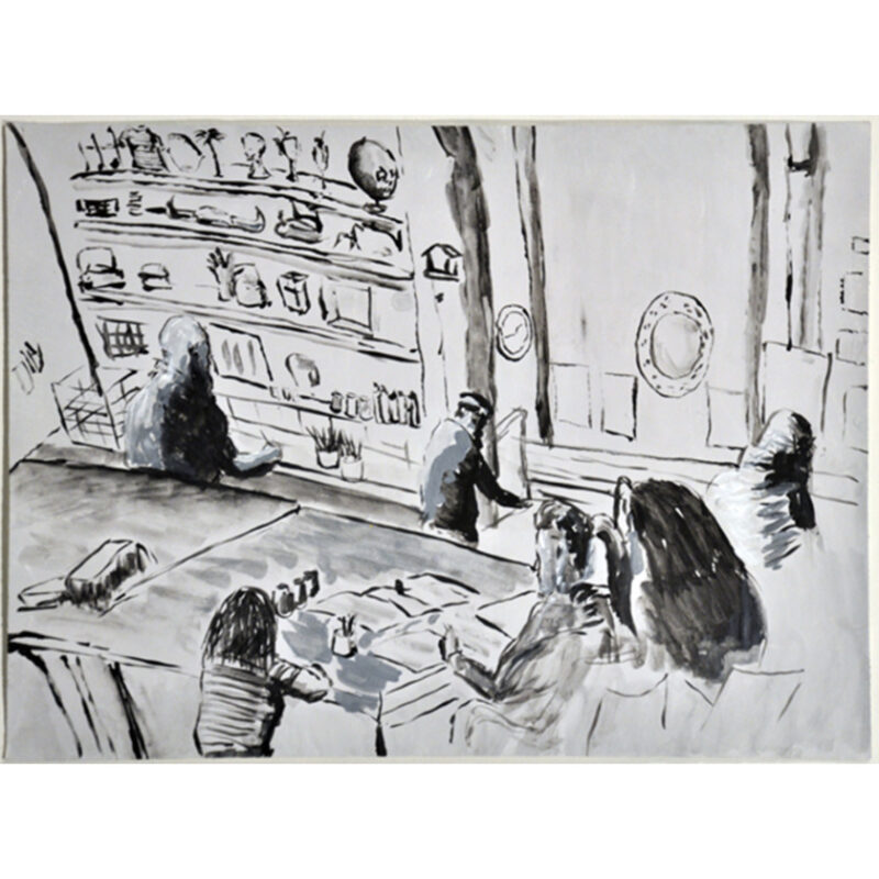 Amani Tia’s distinctive style is impacted by his immediate environment. A confident draughtsperson equipped with a natural aptitude for drawing, Tia enjoyed early success in the appropriation of iconic paintings by some of the great masters, including Manet, Gauguin and Picasso. More recently Tia’s varied subject matter often pays homage to key artists and musicians from a time period roughly spanning the 1950’s through to the 1970’s in a style reflective of Australian modernism, bringing to mind artists such as Joy Hester. Tia has worked at Arts Project Australia since 2013 and was a finalist in the Victorian Indigenous Art Awards in 2014. In 2017, he undertook a Bundoora Nebula Residency at Bundoora Homestead Art Centre. His work is held in private collections Australiawide.