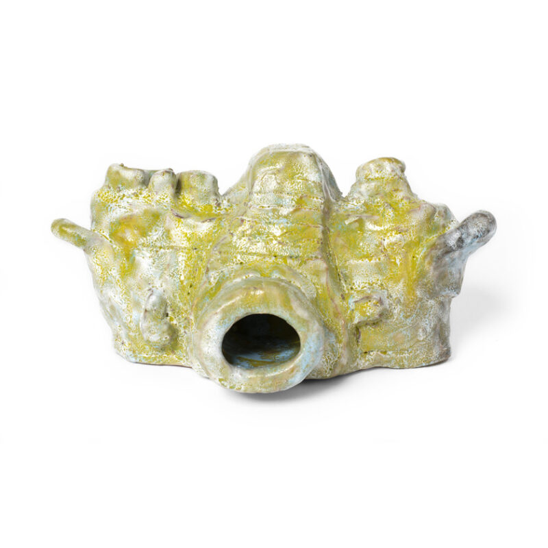 Alan Constable is a multi-disciplinary artist widely known for his ceramic cameras. Legally blind, Constable works closely with referent objects, committing the physical forms of optical objects to memory and then to clay. Pinched, pushed and molded, the hand-built works possess a gestural tactility, shining with lustrous wet-finish glazes. The works reflect a life-long fascination with optical instruments beginning at the age of eight with the artist creating replicas of old cameras from cardboard cereal boxes. Constable’s finger impressions can be seen clearly on the clay surface, leaving the mark of the maker as a lasting imprint. Coinciding with his 3D practice, Constable maintains a strong painting and drawing practice, focusing on imagery from newspapers and magazines as his points of reference.