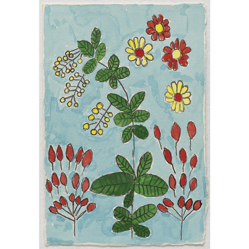 Rosie O’Brien is an emerging artist working on paper, digital animation and textiles. She draws inspiration from the rich colour and form found in botany, approaching the work with a delicate intimacy. The vibrant use of pattern and placement of soft vessel-like flowers demonstrates her sensitive and observant style. In her soft sculpture work the fabric piles up to form peaks of carefully chosen colours, and in works on paper the composition is sparse, the soft palette reminiscent of spring.