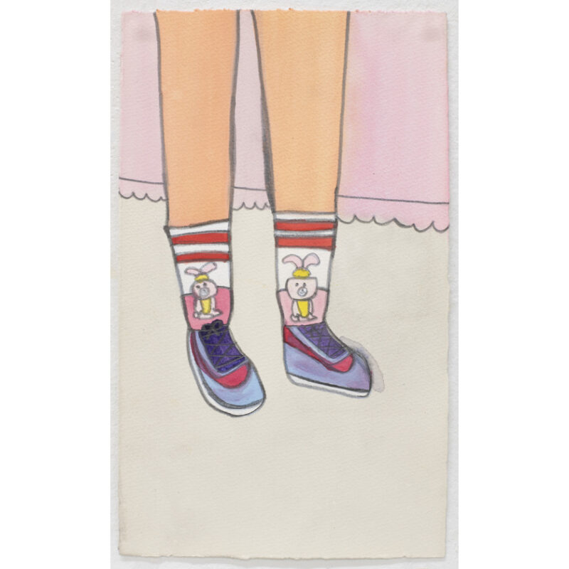 Sammi-Jo Matta is an emerging artist who uses a range of mediums in her work, from acrylic paints through to compressed charcoal. Often referencing advertisements, pop culture and everyday life, she approaches her practice with confident fluid lines and brilliant colours. The proportions of her figures are of interest and are elongated to fill the proportions of the page.