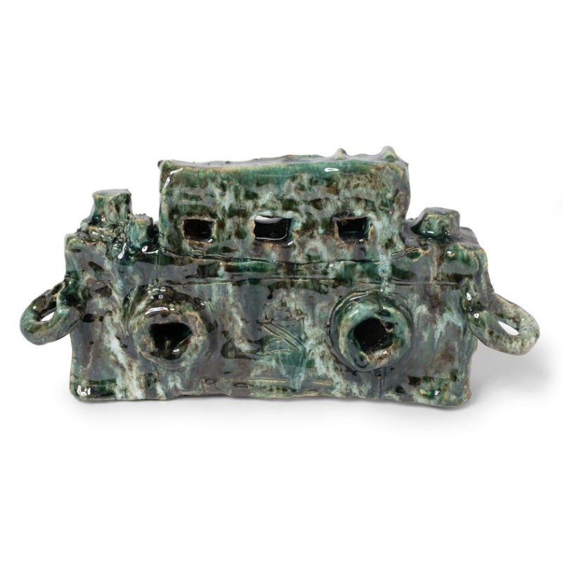 Alan Constable is a multi-disciplinary artist widely known for his ceramic cameras. Legally blind, Constable works closely with referent objects, committing the physical forms of optical objects to memory and then to clay. Pinched, pushed and molded, the hand-built works possess a gestural tactility, shining with lustrous wet-finish glazes. The works reflect a life-long fascination with optical instruments beginning at the age of eight with the artist creating replicas of old cameras from cardboard cereal boxes. Constable’s finger impressions can be seen clearly on the clay surface, leaving the mark of the maker as a lasting imprint. Coinciding with his 3D practice, Constable maintains a strong painting and drawing practice, focusing on imagery from newspapers and magazines as his points of reference.