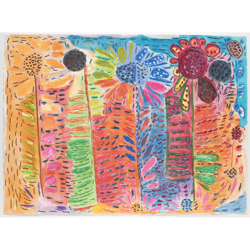 Robert Brown is an accomplished abstract painter whose work is characterised by his use of pop and fluro colour and spontaneous layering of floral motifs. Typically working on large sheets of paper and canvas, he draws inspiration from found images of landscapes, reinterpreting what he sees with great freedom to create bright compositions, balancing highly concentrated pattern with quiet space. Brown has worked at Arts Project since 2001 and has exhibited extensively throughout Australia. He has work in the Artbank Collection in Melbourne, as well as private collections worldwide.