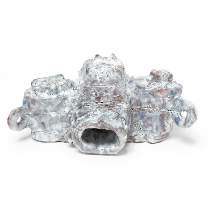 Alan Constable is a multi-disciplinary artist widely known for his ceramic cameras. Legally blind, Constable works closely with referent objects, committing the physical forms of optical objects to memory and then to clay. Pinched, pushed and molded, the hand-built works possess a gestural tactility, shining with lustrous wet-finish glazes. The works reflect a life-long fascination with optical instruments beginning at the age of eight with the artist creating replicas of old cameras from cardboard cereal boxes. Constable’s finger impressions can be seen clearly on the clay surface, leaving the mark of the maker as a lasting imprint. Coinciding with his 3D practice, Constable maintains a strong painting and drawing practice, focusing on imagery from newspapers and magazines as his points of reference.