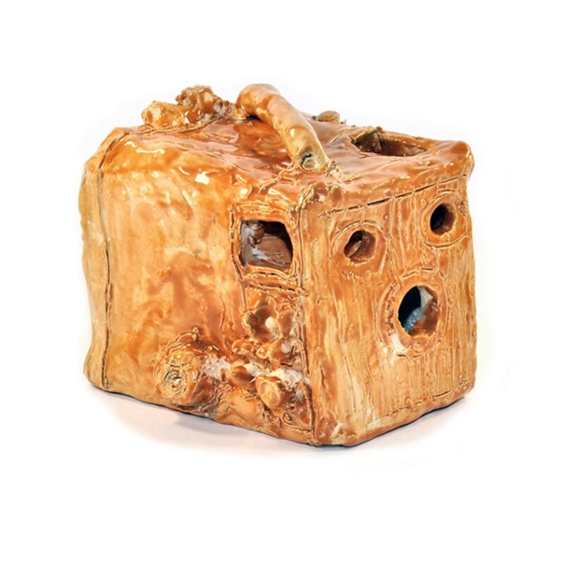Alan Constable is a multi-disciplinary artist widely known for his ceramic cameras. Legally blind, Constable works closely with referent objects, committing the physical forms of optical objects to memory and then to clay. Pinched, pushed and molded, the hand-built works possess a gestural tactility, shining with lustrous wet-finish glazes. The works reflect a life-long fascination with optical instruments beginning at the age of eight with the artist creating replicas of old cameras from cardboard cereal boxes. Constable’s finger impressions can be seen clearly on the clay surface, leaving the mark of the maker as a lasting imprint. Coinciding with his 3D practice, Constable maintains a strong painting and drawing practice, focusing on imagery from newspapers and magazines as his points of reference.