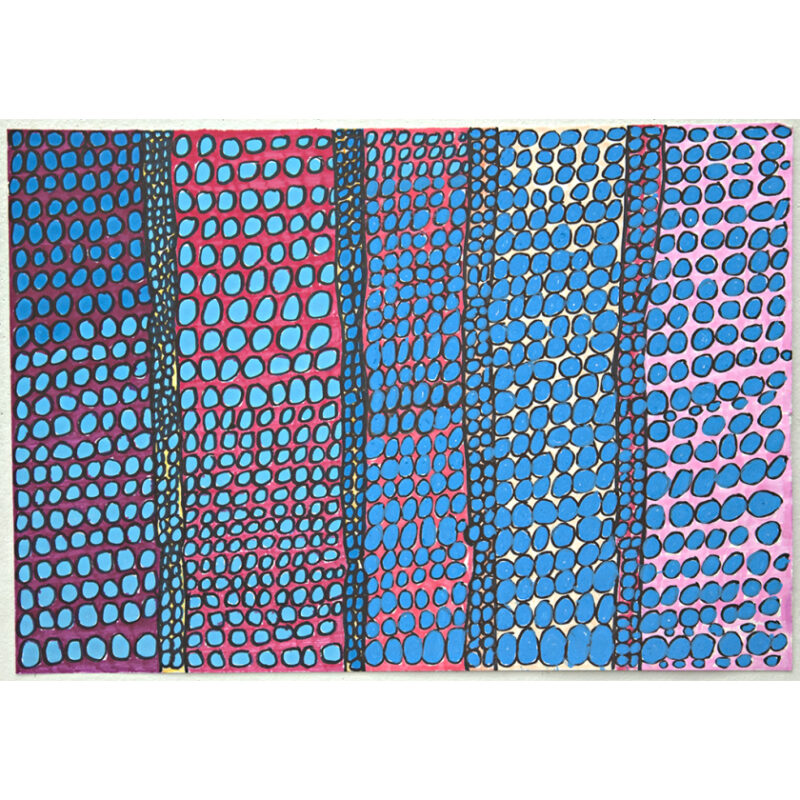 Robyn Doherty’s art practise involves the creation of intricate works using paint pens and markers on paper. Doherty’s gentle observations of serene landscapes, seascapes, animals and linear pattern formations are complemented by a deliberate, considered application of the medium and elegantly balanced composition.