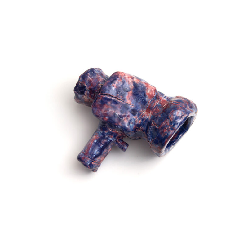 Alan Constable is a multi-disciplinary artist widely known for his ceramic cameras. Legally blind, Constable works closely with referent objects, committing the physical forms of optical objects to memory and then to clay. Pinched, pushed and molded, the hand-built works possess a gestural tactility, shining with lustrous wet-finish glazes. The works reflect a life-long fascination with optical instruments beginning at the age of eight with the artist creating replicas of old cameras from cardboard cereal boxes. Constable’s finger impressions can be seen clearly on the clay surface, leaving the mark of the maker as a lasting imprint. Coinciding with his 3D practice, Constable maintains a strong painting and drawing practice, focusing on imagery from newspapers and magazines as his points of reference.