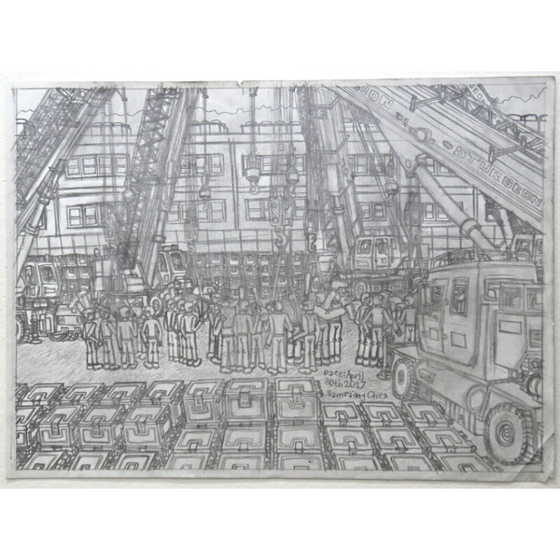 Samraing Chea is an artist who works predominantly with coloured and graphite pencils. With inspirations stemming from commerce, politics, urban landscapes and social environments, Chea’s work contains both humorous and startling social commentary. Alluding to both historical and present-day references, Chea’s art practice demonstrates an uncanny ability to extract the irony and idiosyncrasies of his subject matter.