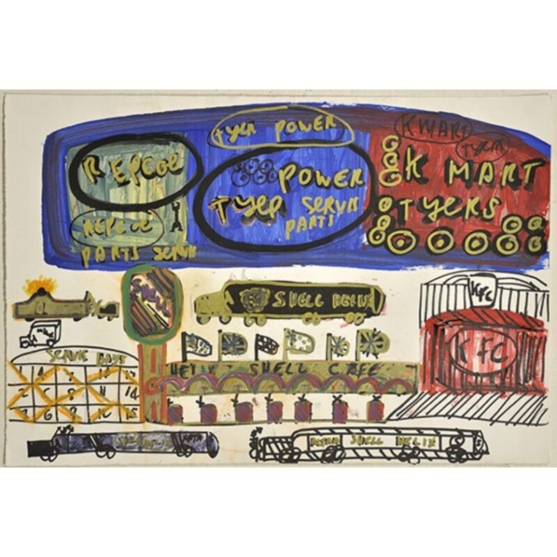 Steven Perrette is a mid-career artist whose small and mid-scale works on paper frequently depict frenetic workings of the western world. Throughout his career, he has maintained a fascination with industrial and vintage ships and sailing boats as well as country roads and highways that he travelled with his father when he was a young child. Perrette has worked at Arts Project since 2000 and had his first solo exhibition in 2011. He has exhibited in numerous group shows and has work in the National Gallery of Australia, City of Moreland and V-Line collections.